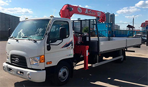 Где применяется: на разгрузке паллетов до 1.5 тонн, с погрузкой на себя и с завозом на участок или склад. Проходимость слабая, поэтому в условиях бездорожья, лучше не рисковать и заказывать кран-манипулятор вездеход. Можно применять для перевозки бревен до 8-ми метров или дачных бытовок размером 2.4 на 4 метра. Для строительных бытовок он не подходит. Лучше выбрать манипулятор со стрелой 5 или 7 тонн. Перевозка и разгрузка деревьев высотой до 5-6 метров.